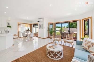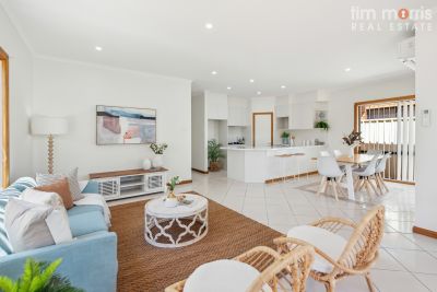 The kitchen seamlessly connects to the open-plan dining & living areas, all serviced by reverse-cycle split system air conditioning for year-round comfort. Step outside from the living space to the undercover outdoor entertaining area, effortlessly blending indoor & outdoor living.